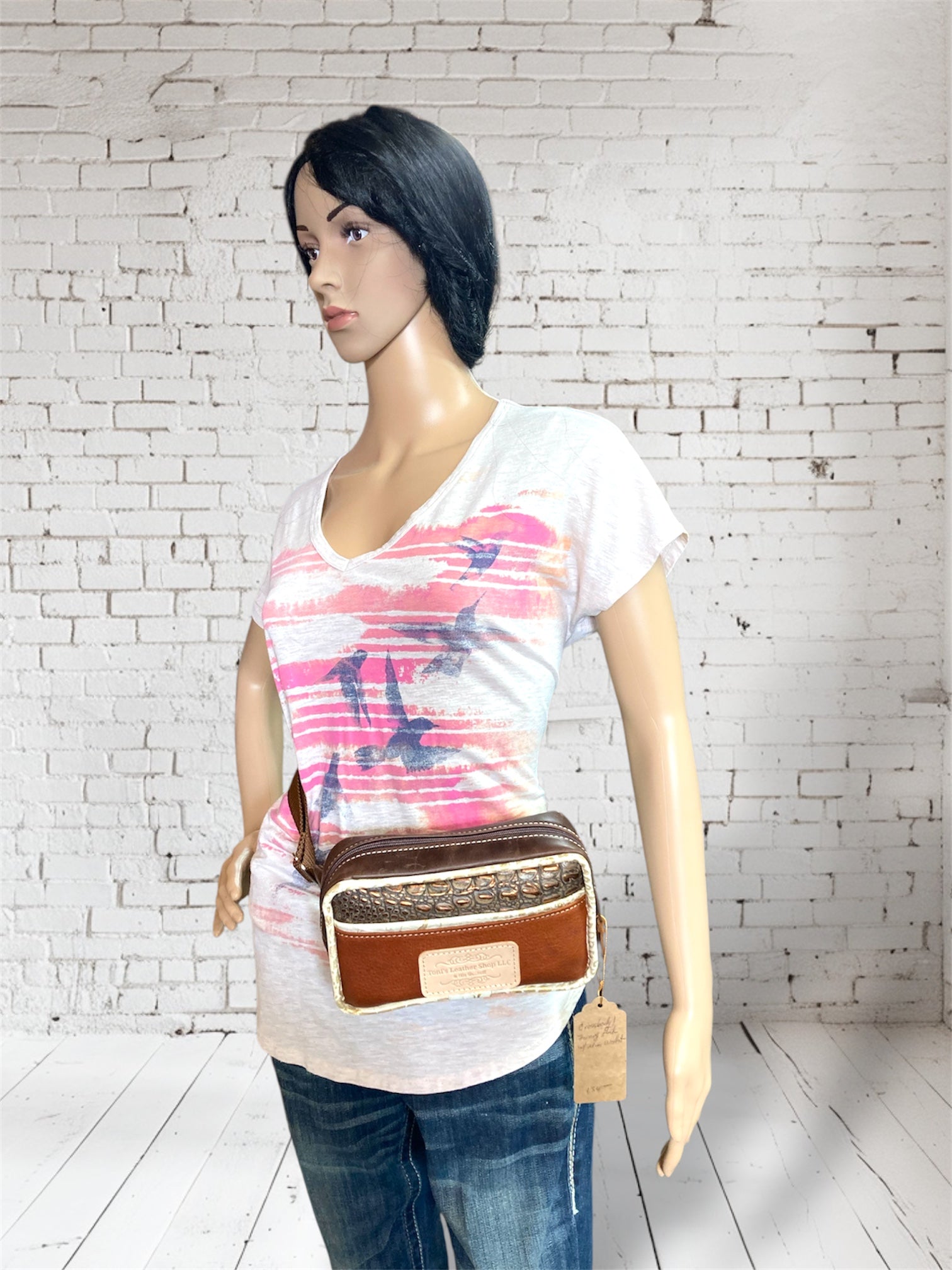 Elevate your everyday carry with this artisan-crafted leather crossbody/fanny pack, featuring Alligator Embossed leather with a matching mini wallet. Designed for style, versatility, and durability. Each piece is meticulously handmade, showcasing premium craftsmanship and timeless appeal.